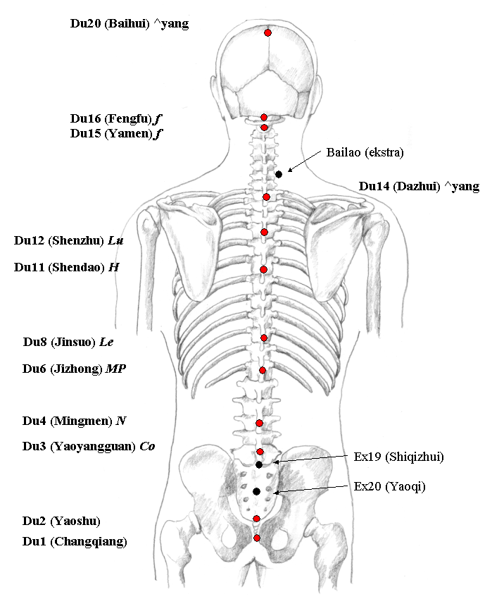 Indikationer: N-yang-xu: kuldefornemmelse, træthed, svag livsgnist og kønsdrift, impotens, lys rigelig urin, hvidt udflåd fra skeden; evt. xu-feber (svingende, med kulderystelser og på "svage" tidspunkter); jing-xu: infertilitet, lave sædtal